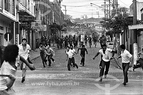 Confrontation between demonstrators and the Army Police during the military intervention in the Metalurgic Syndicate - Sao Bernardo do Campo city - Sao Paulo state (SP) - Brazil