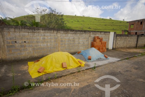 • Stack of bricks and other building materials on the sidewalk - Guarani city - Minas Gerais state (MG) - Brazil