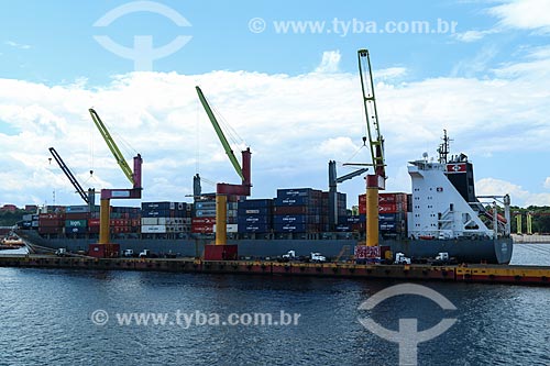 Berthed ship - Port of Chibatao containers terminal - Manaus city - Amazonas state (AM) - Brazil
