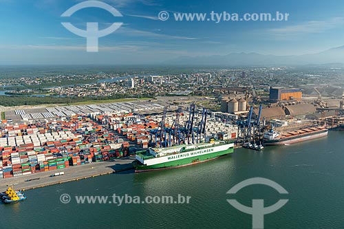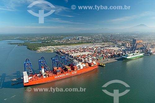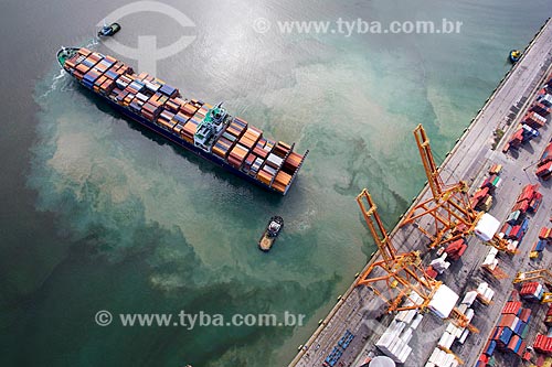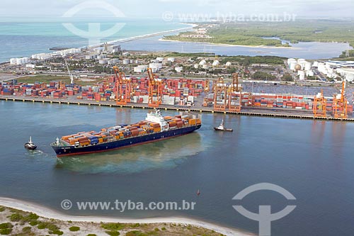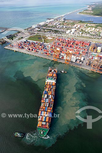 •  Aerial photo of the cargo ship berthed in TECON - Container Terminal - of the Port of Suape Complex  - Ipojuca city - Pernambuco state (PE) - Brazil