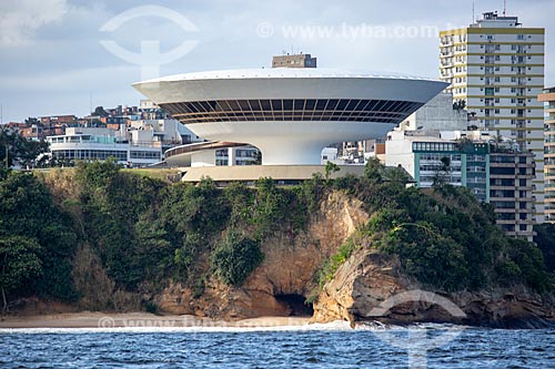 View of Niteroi Contemporary Art Museum (1996) - part of the Caminho Niemeyer (Niemeyer Way) - from Guanabara Bay - Niteroi city - Rio de Janeiro state (RJ) - Brazil