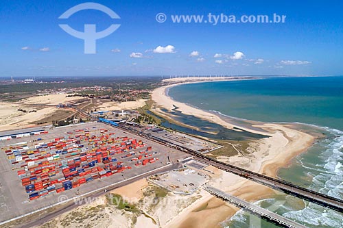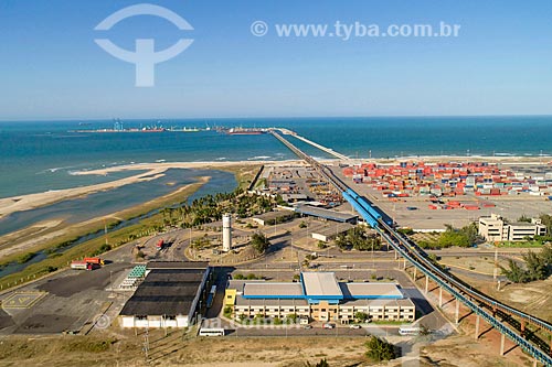 Picture taken with drone of the Pecem Beach with the iron ore conveyor belt between Pecem Steel company and Port Terminal of Pecem - part of the Pecem Industrial and Port Complex - Sao Goncalo do Amarante city - Ceara state (CE) - Brazil