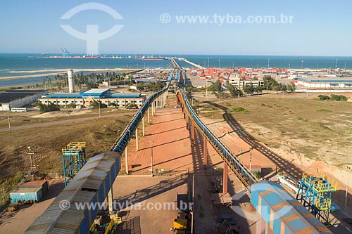 Picture taken with drone of the iron ore conveyor belt between Pecem Steel company and Port Terminal of Pecem - part of the Pecem Industrial and Port Complex - Sao Goncalo do Amarante city - Ceara state (CE) - Brazil