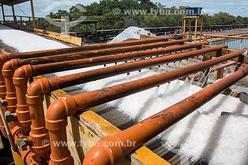 Extraction of salt with conveyor belt - evaporation ponds - Macau city - Rio Grande do Norte state (RN) - Brazil