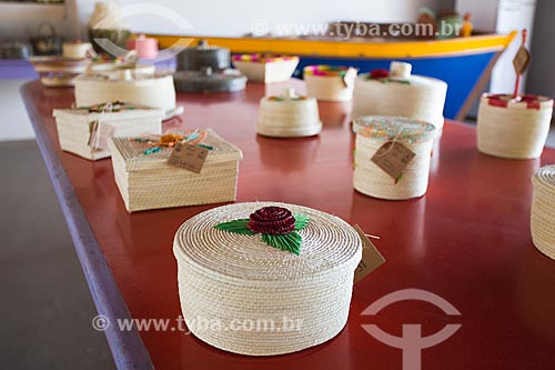 Utensils produced by the artisans of Pontal do Coruripe, producing crafts with straw of licuri palm - Coruripe city - Alagoas state (AL) - Brazil