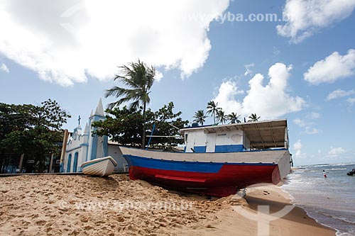 Sao Francisco Church with the Portinho Beach waterfront - Mata de Sao Joao city - Bahia state (BA) - Brazil