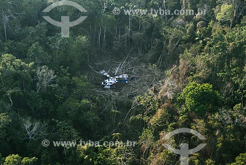 Helicopter of the Core Operations and Air Transport - NOTAer/Military Police carrying fire fighters during fire in the Biological Reserve of Sooretama - Sooretama city - Espirito Santo state (ES) - Brazil