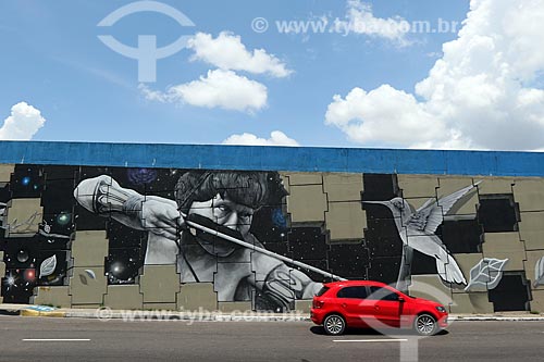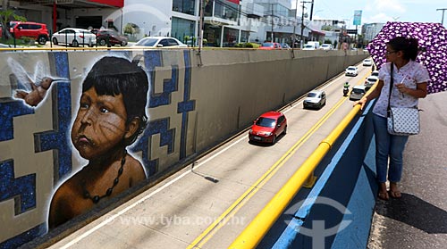 Graffiti by Raiz Campos with Amazonian themes - Gilberto Mestrinho Road Complex - Manaus city - Amazonas state (AM) - Brazil