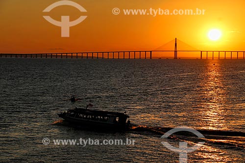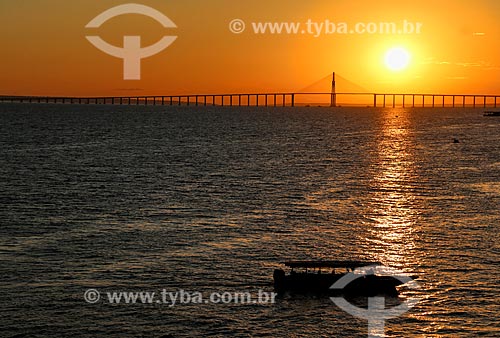 Sunset - Negro River with the Negro River Bridge (2011) in the background - Manaus city - Amazonas state (AM) - Brazil
