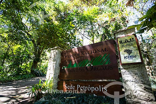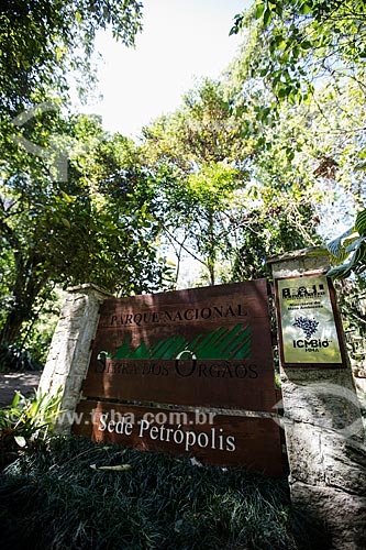 Plaque - entrance of Serra dos Orgaos National Park - Petropolis city - Rio de Janeiro state (RJ) - Brazil