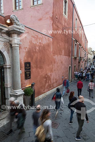 •  Tourist photographing hotel - Corso Umberto  - Taormina city - Messina province - Italy
