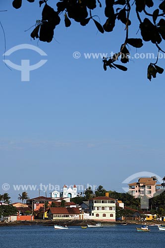 Fishing boat - Meaipe Beach with the Saint Anne Church (1619) in the background - Guarapari city - Espirito Santo state (ES) - Brazil