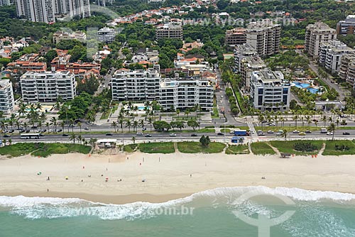 Aerial photo of the Lucio Costa Avenue - also known as Sernambetiba Avenue - with the Barra da Tijuca Beach waterfront - Rio de Janeiro city - Rio de Janeiro state (RJ) - Brazil