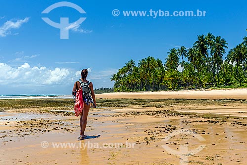 Woman walking - Bombaca Beach waterfront - Marau city - Bahia state (BA) - Brazil