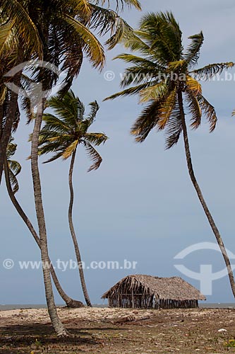 Subject: Coconut palms and thatch house on the Costinha Bbeach / Place: Lucena city - Paraiba state (PB) - Brazil / Date: 02/2013
