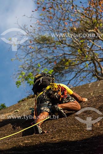 Detail of climber during the climbing of the north face to Urca Mountain - Rio de Janeiro city - Rio de Janeiro state (RJ) - Brazil