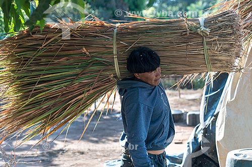 •  Indian carrying the thatch to do hut cover - Aiha village of the Kalapalo tribe - INCREASE OF 100% OF THE VALUE OF TABLE  - Querencia city - Mato Grosso state (MT) - Brazil