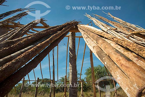 Kijeme, name Pataxo for hut - made of piassava cover and walls made of clay - Pataxo da Jaqueira Reserva - Porto Seguro city - Bahia state (BA) - Brazil