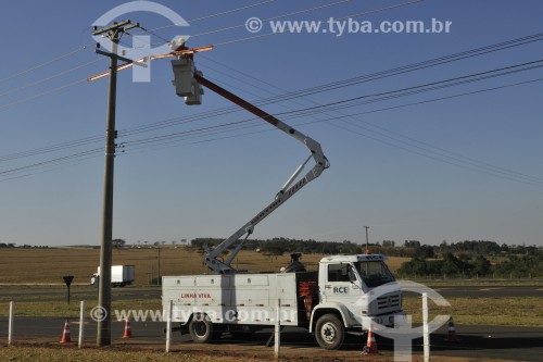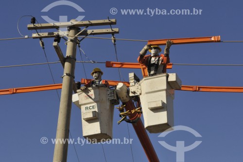 Men working on electrical network maintenance - Mirassol city - Sao Paulo state (SP) - Brazil