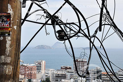 Illegal electrical wiring - Pavao Pavaozinho slum with the Natural Monument of Cagarras in the background - Rio de Janeiro city - Rio de Janeiro state (RJ) - Brazil