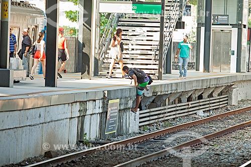 Man climbing on platform Maracanã Station of Supervia - rail transport services concessionaire - Rio de Janeiro city - Rio de Janeiro state (RJ) - Brazil