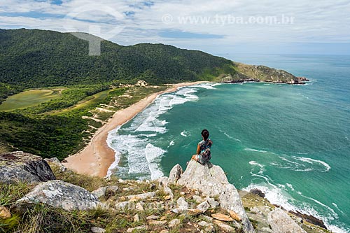 Tourist observing the landscape from Crown Peak - Lagoinha do Leste Municipal Park - Florianopolis city - Santa Catarina state (SC) - Brazil