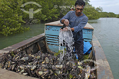 •  Crab fishermen on a boat at Parnaiba River delta - Piaui state - Brazil - February 2006