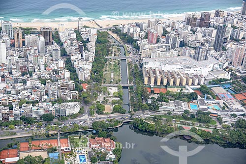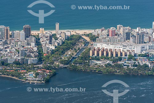 Aerial photo of the Ipanema neighborhood with the Ipanema Beach - to the left - and with the Rodrigo de Freitas Lagoon - to the right - Rio de Janeiro city - Rio de Janeiro state (RJ) - Brazil