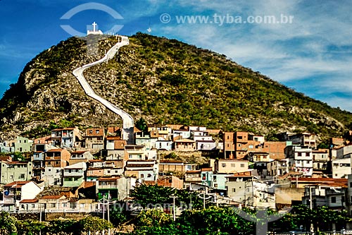 General view of the Jacobina city with the cross in Cruzeiro Montain Range - Jacobina city - Bahia state (BA) - Brazil