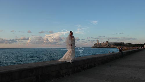 Subject: Bride on Malecon with San Salvador de la Punta Castle in the background / Local: Havana - Cuba / Date: october 2009