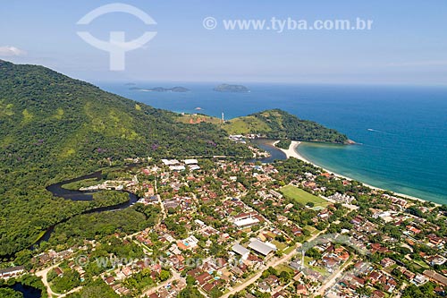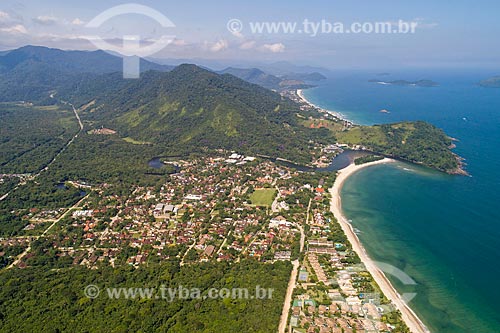 Picture taken with drone of the Barra do Una Beach - meeting point and river mouth of the Una and Cubatao Rivers - Sao Sebastiao city - Sao Paulo state (SP) - Brazil