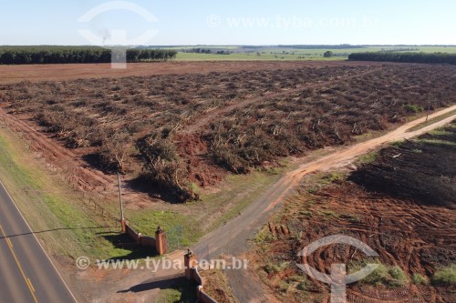 Picture taken with drone of eradicated rubber to give way to sugarcane plant - Planalto city - Sao Paulo state (SP) - Brazil