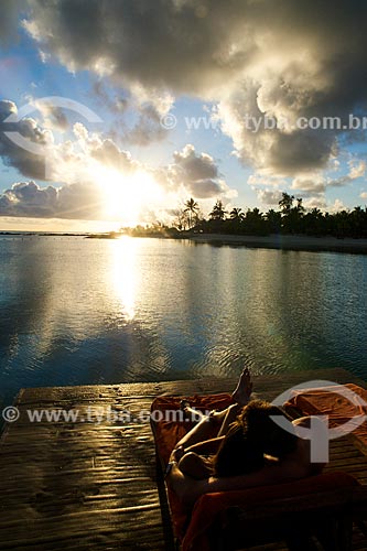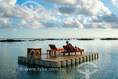 •  Subject: Couple watching the sunset from floating deck of the Prince Maurice Resort / Place: Flacq district - Mauritius - Africa / Date: 11/2012