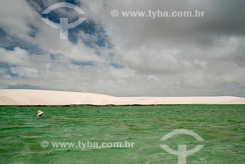Woman swimming - America Lagoon - Lencois Maranhenses National Park - Santo Amaro do Maranhao city - Maranhao state (MA) - Brazil