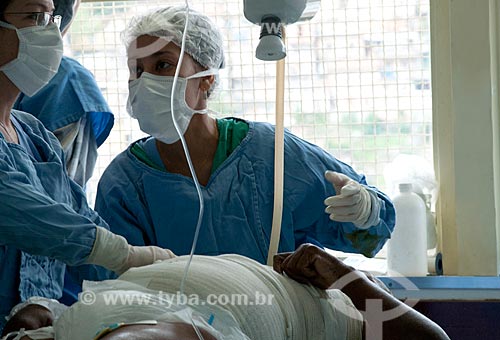 •  Subject:  Federal Hospital of Andarai - Center for treatment of burning injuries - Patient receives healing after balneotherapy / Place:  Andaraí - Rio de Janeiro city - Brazil  / Date: 10/2010