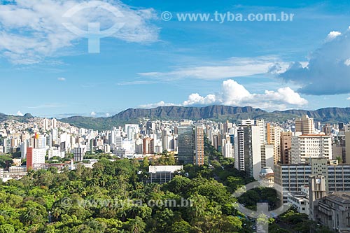 •  General view of the Americo Renne Giannetti Municipal Park (1897) and the Afonso Pena Avenue with the Curral Mountain Range in the background  - Belo Horizonte city - Minas Gerais state (MG) - Brazil
