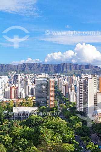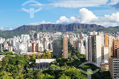 General view of the Belo Horizonte city with the Carlos Chagas Square - also known as Assembleia Square - and the Curral Mountain Range in the background - Belo Horizonte city - Minas Gerais state (MG) - Brazil