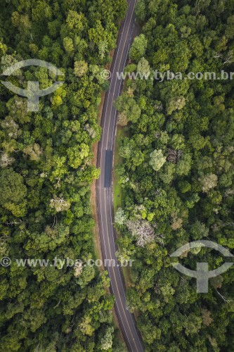Picture taken with drone of the road cutting through the Iguaçu National Park - Foz do Iguacu city - Parana state (PR) - Brazil