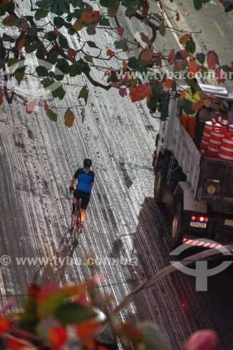 Cyclist on Atlantic Avenue at dawn - Rio de Janeiro city - Rio de Janeiro state (RJ) - Brazil