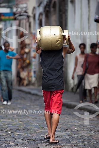 •  Subject: Man carrying gas cylinder / Place: Pelourinho neighborhood - Salvador city - Bahia state (BA) - Brazil / Date: 07/2012