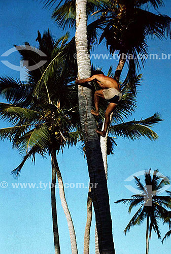 •  Man climbing on the coconut tree - Fortaleza city - Ceara state - Brazil