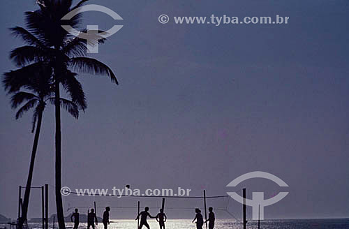 •  People`s silhouette playing volleyball at the beach - Rio de Janeiro city - Rio de Janeiro state - Brazil