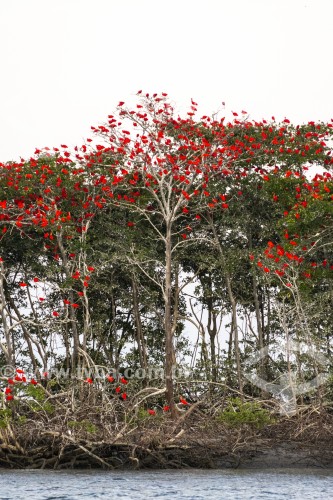 • Group of Scarlate ibis (Eudocimus ruber) nesting in trees in the Parnaiba Delta - Araioses city - Maranhao state (MA) - Brazil