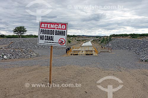 •  Irrigation canal of the Project of Integration of Sao Francisco River with the watersheds of Northeast setentrional with warning plaque that say: Attention, no bath in the canal  - Monteiro city - Paraiba state (PB) - Brazil