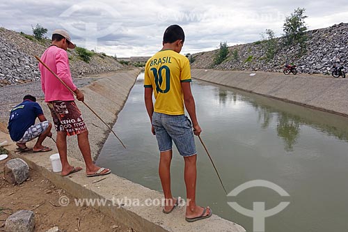 Fishermen - irrigation canal of the Project of Integration of Sao Francisco River with the watersheds of Northeast setentrional - Monteiro city - Paraiba state (PB) - Brazil