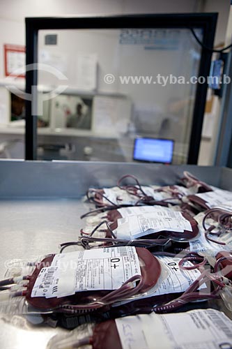 Subject: Blood bags in the refrigerator of the expedition sector of the HemoRio (blood therapy) / Place: Rio de Janeiro city - Brazil / Date: 29/09/2010