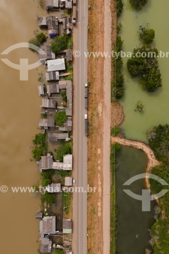Picture taken with drone of the BR-364 Highway bordering the Jamari River - Itapua do Oeste city - Rondonia state (RO) - Brazil