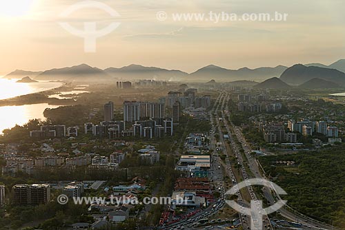 •  Subject: Aerial view of the Americas Avenue - to the left Barra da Tijuca Beach and to the right Tijuca Lagoon / Place: Barra da Tijuca neighborhood  -  Rio de Janeiro city  -  Rio de Janeiro state  ( RJ )   -  Brazil / Date: 01/2013