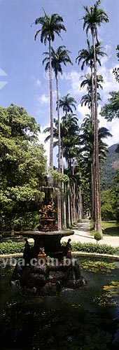 Imperial palms - Botanical Garden of Rio de Janeiro - with fountain of the Muses in the background - Rio de Janeiro city - Rio de Janeiro state (RJ) - Brazil