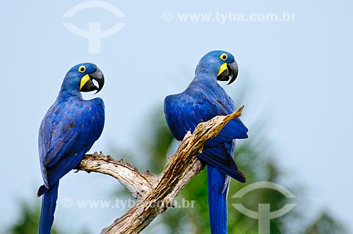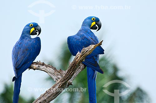 Subject: Couple of Wild Hyacinth Macaw (Anodorhynchus hyacinthinus) / Place: Corumba city - Mato Grosso do Sul state (MS) - Brazil / Date: 10/2010